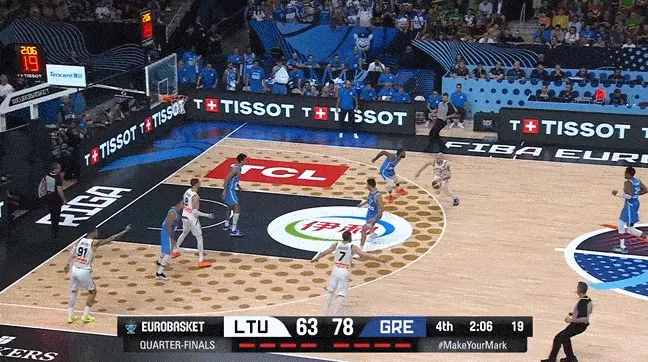 欧锦赛1/4决赛,立陶宛76-87不敌希腊。